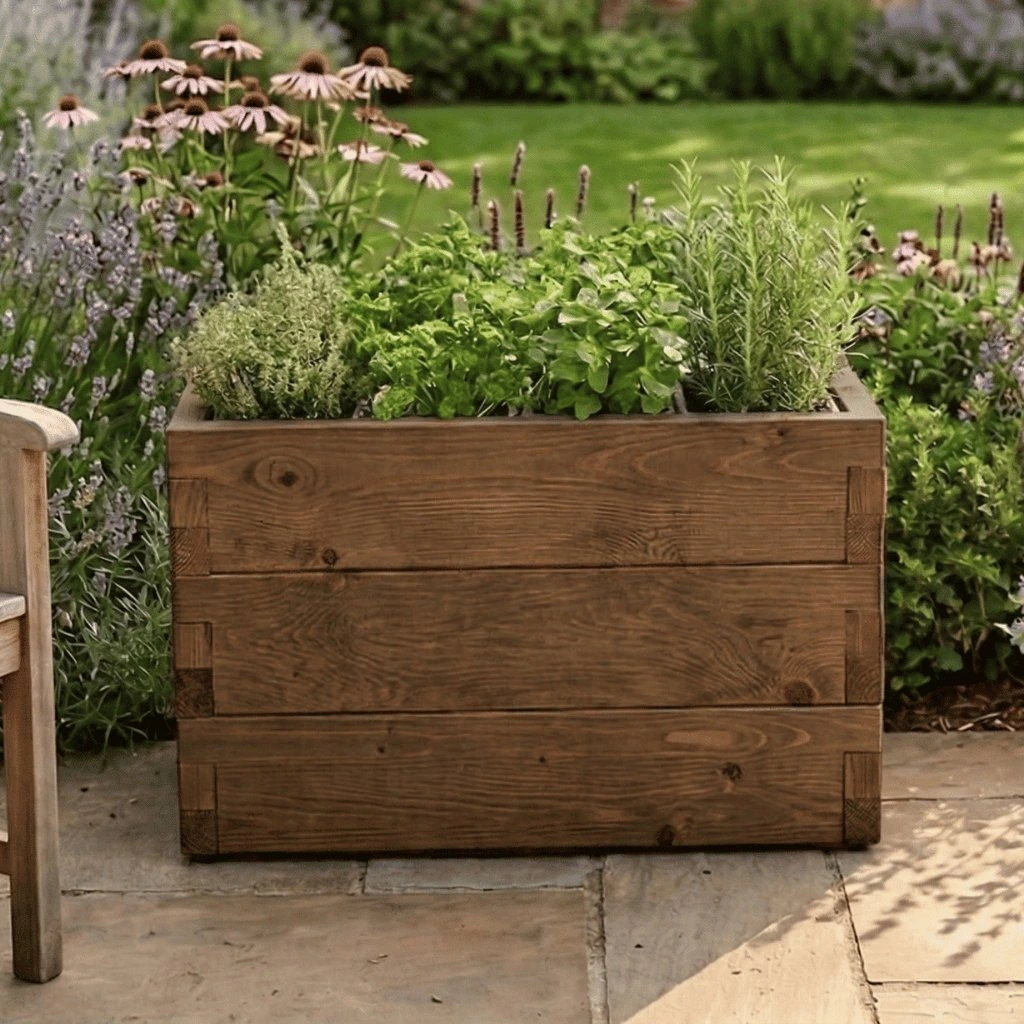 Zatímco běžné truhlíky jsou z tenkých latí, my používáme stavební smrkové KVH hranoly o tloušťce 40 mm. Ty se nekroutí, nepraskají a záhonu dodávají stabilitu, kterou jinde nenajdete.