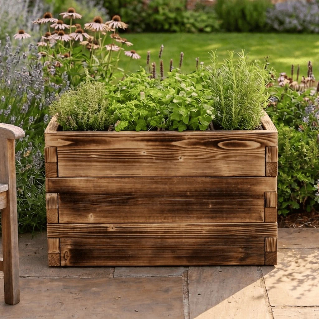 Toto řešení je ideální na terasy, balkony nebo dlažbu. Vlhkost zůstává v truhlíku, dřevo lépe dýchá a vy máte pěstování pod kontrolou bez zbytečného nepořádku kolem.